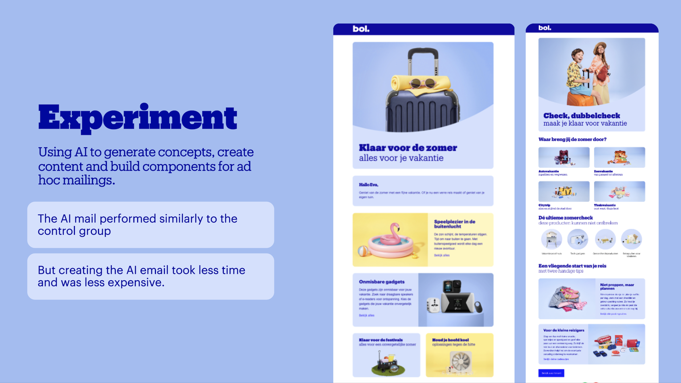 Experiments are one of the first steps in my service design journey, I explore where and how AI can be implemented, including personalization, by creating proofs of concept and testing them with the business. Together we gather data, validate assumptions, and build business cases to generate momentum and ensure every initiative is grounded in measurable value.