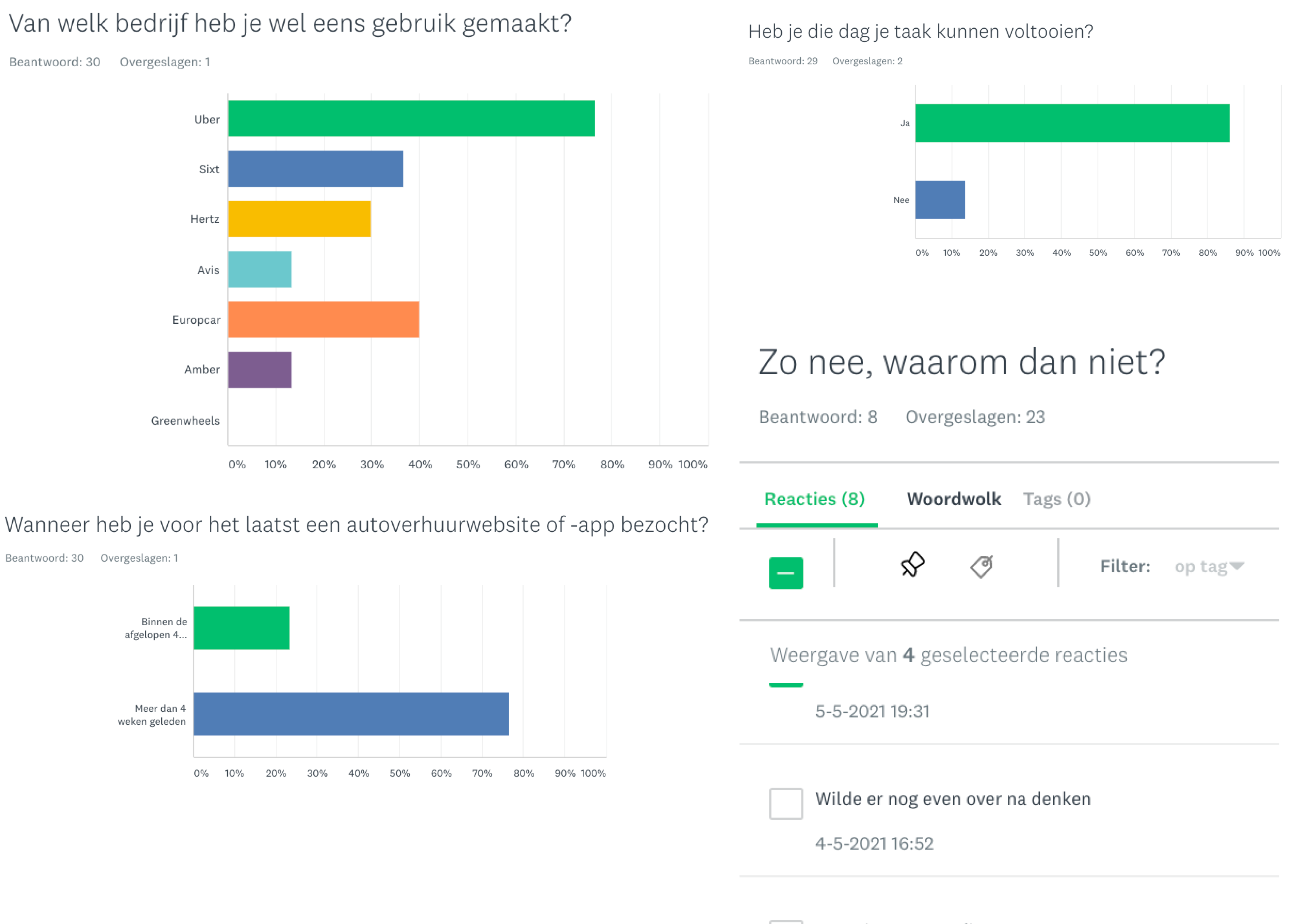 During the discovery phase of the project, I did a series of usability tests, as well as an online survey and a competitive benchmark to get a better understanding of the problems people encounter when visiting car-rental apps.